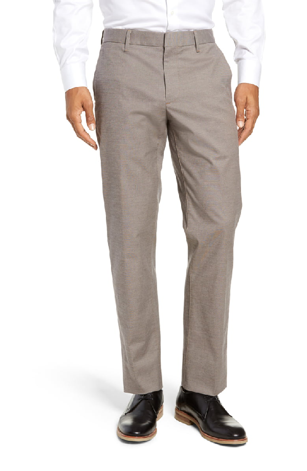 A sharp look for any day of the week these flat front pants are made from soft easy care stretch fabric and cut for a trim but not tight fit.